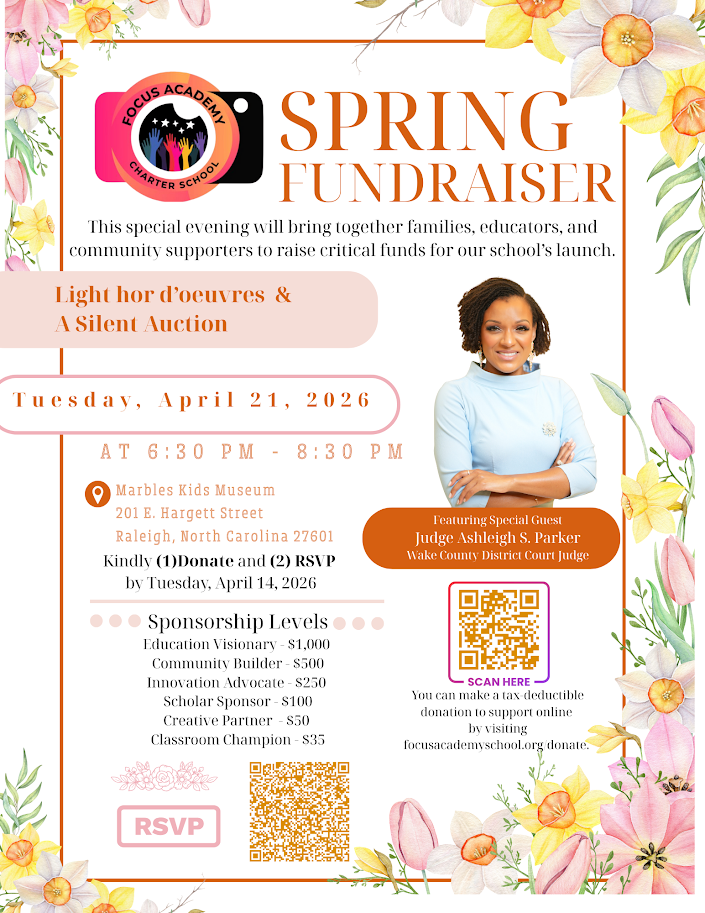 Opening in August 2026, Focus Academy Charter School will serve students in Southeast Raleigh with a high-quality, arts-integrated educational experience that nurtures the whole child—academically, socially, and creatively, while preparing students for lifelong achievement and meaningful contributions to society.
